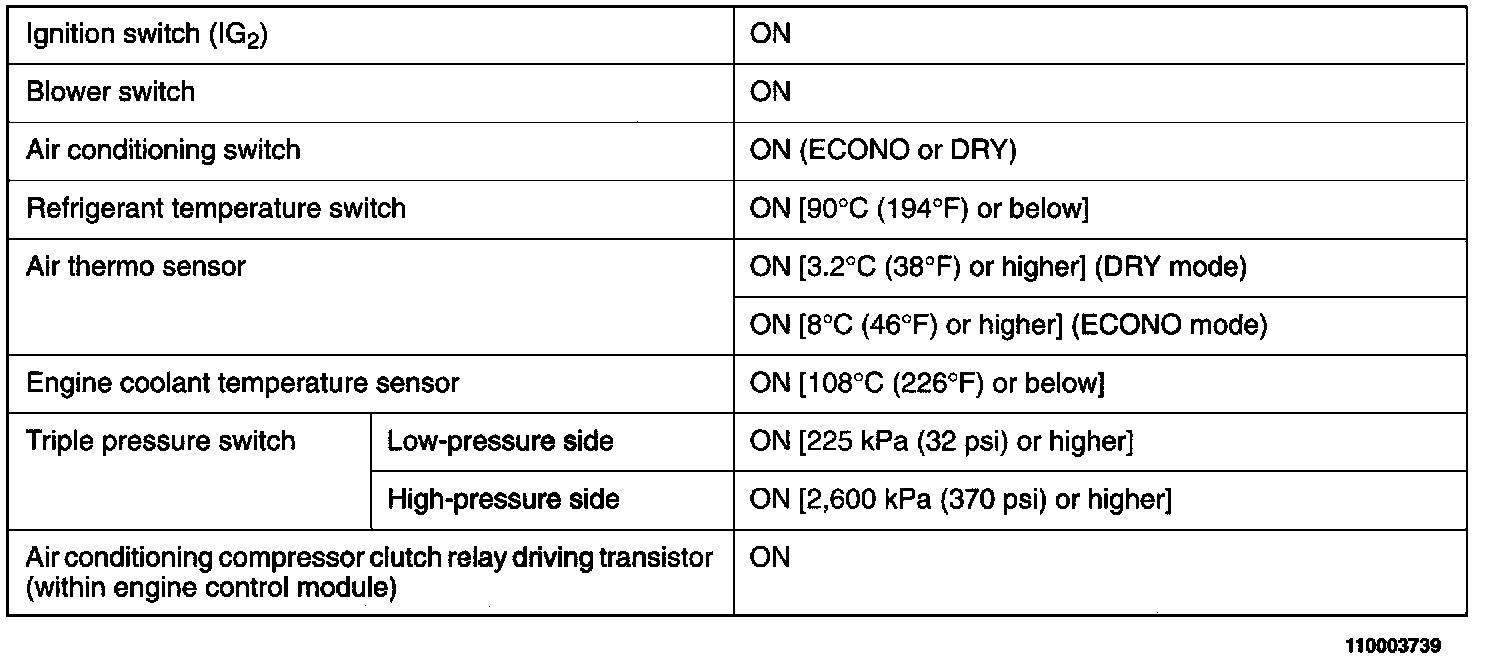 Air Conditioning Compressor Clutch Relay ON Conditions: