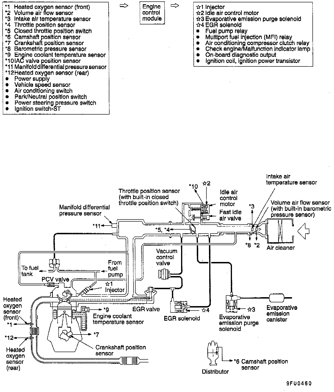 Moreover, since memorization of the diagnostic trouble codes is backed up directly by the battery, the diagnostic results are memorized even if the ignition key is turned off. The diagnostic trouble codes will, however, be erased when the battery terminal or the engine control module connector is disconnected.