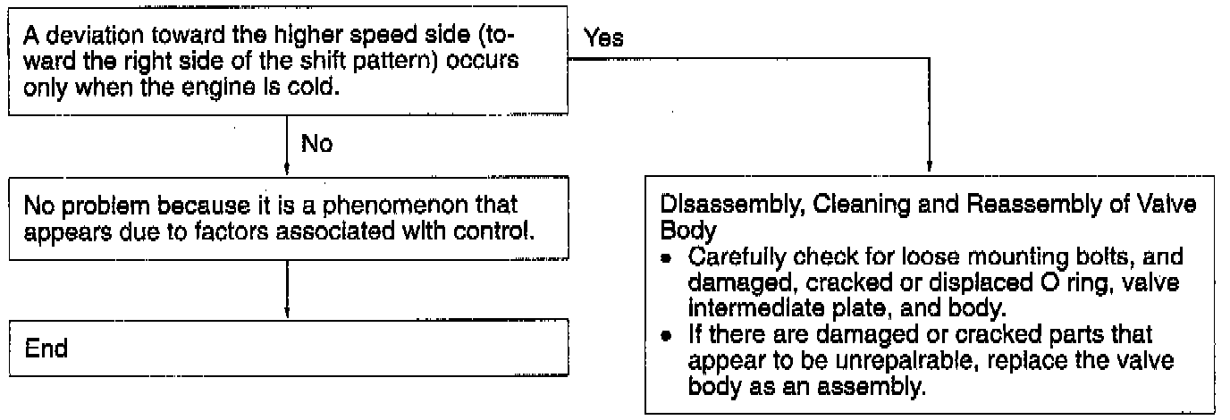 Deviations occur at some shift points during operation. In this case, a defective valve body is suspected, but deviations which are no problems could occur, though rarely, due to factors associated with control.