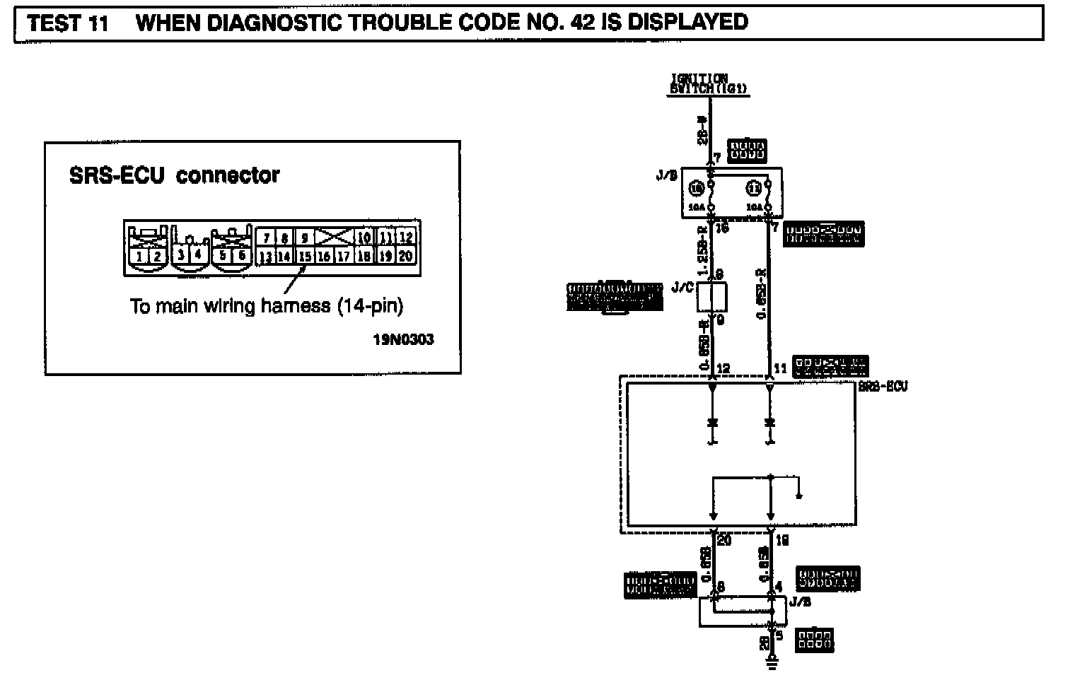 4. Disconnect the red 14-pin connector from the SRS-ECU.