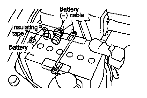 1. Turn the ignition key to the "LOCK" position, disconnect the negative battery cable and tape the terminal.