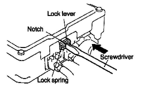 3. Place a flat-tipped screwdriver against the lock spring at the lock lever notch and push the spring toward the unit.