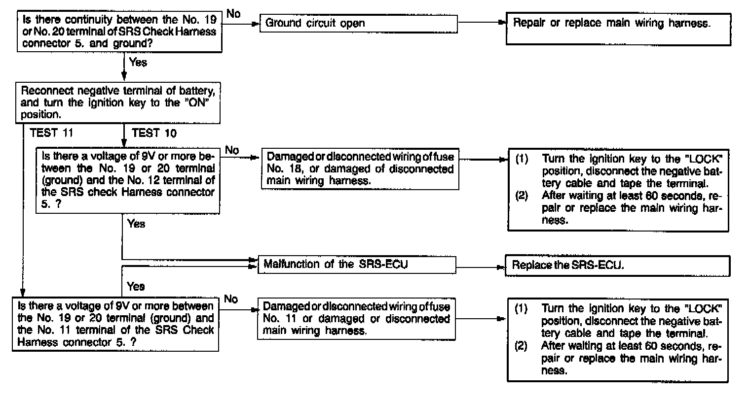 1. After repairing the SRS, reconnect the battery cable and check the SRS warning light operation to verify the system functions properly. (Refer to TEST 2.)