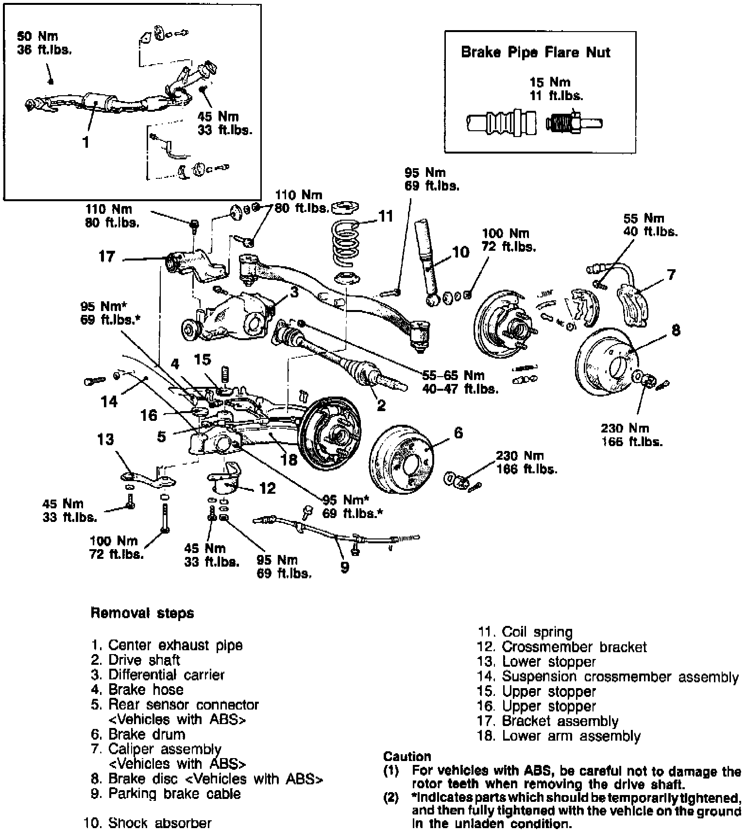 b. Before removing coil spring scribe a mating mark on lower arm assembly and crossmember for installation reference, then loosen lower arm mounting nut and remove coil spring.