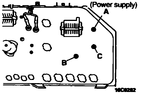 CAUTION: When inserting the testing probe into the power supply terminal, be careful not to touch the printed beard.