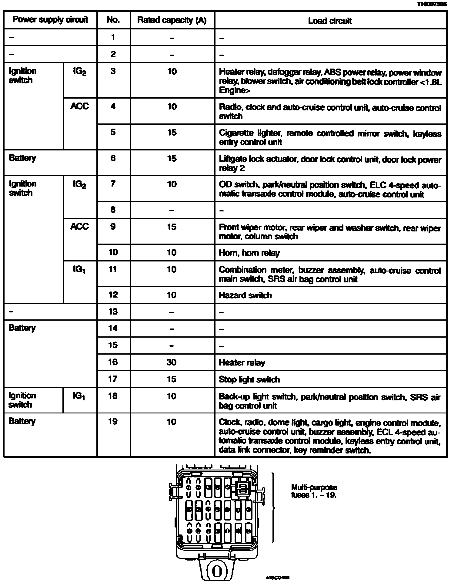 Multi Purpose Fuses (In Junction Box):