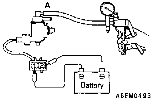 3. Connect a hand vacuum pump to nipple A of the solenoid valve (refer to illustration).