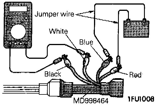 CAUTION: Be very careful when connecting the jumper wires; incorrect connection can damage the heated oxygen sensor (front).
