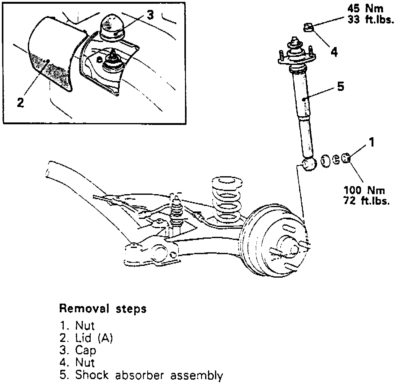 3. Remove upper shock absorber mounting nut, then shock assembly.