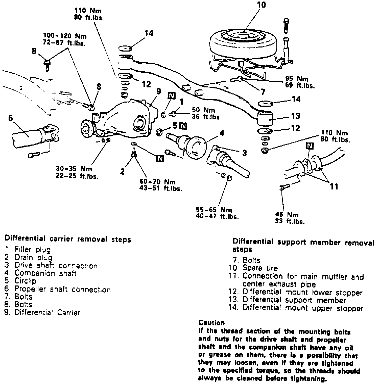 b. Do not damage oil seal of differential carrier with spline section of companion shaft. Righthand shaft on vehicles that have LSD with VCU has a two stage serration. Left and right end can be determined from stampings on companion shaft.