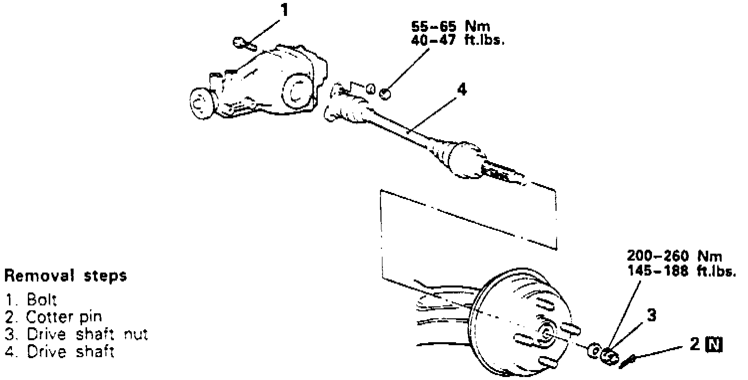 7. Reverse procedure to install, torquing companion flange bolts to 40-47 ft. lbs. and driveshaft nut to 145-188 ft. lbs.