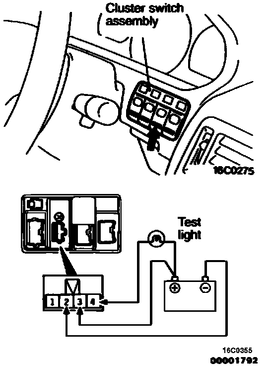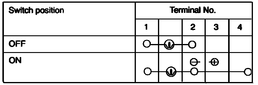 3. Apply battery voltage between the terminals (3), (4) and (2) to confirm that the test light illuminates for about 11 Minutes when the switch is turned on.