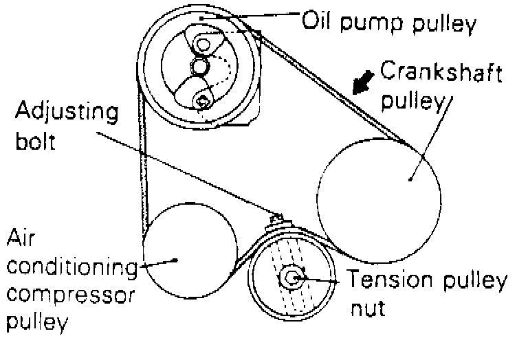 2. Deflection should be 0.27-0.30 inch. If deflection is not within specifications, tighten belt as follows: