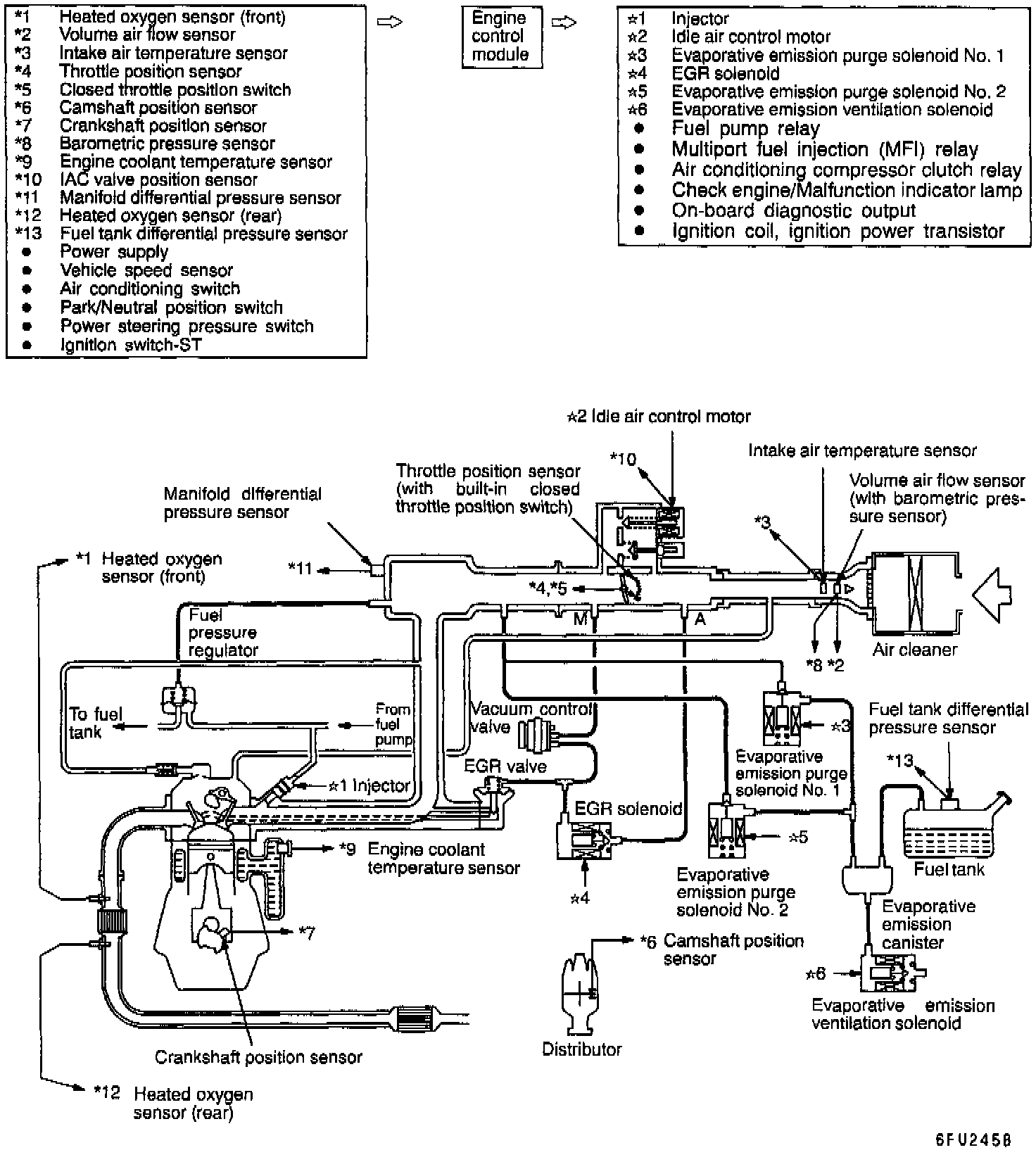 Moreover, since memorization of the diagnostic trouble codes is backed up directly by the battery, the diagnostic results are memorized even if the ignition key is turned off. The diagnostic trouble codes will, however, be erased when the battery terminal or the engine control module connector is disconnected.