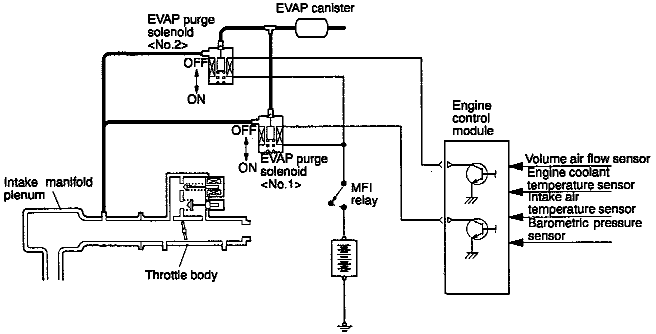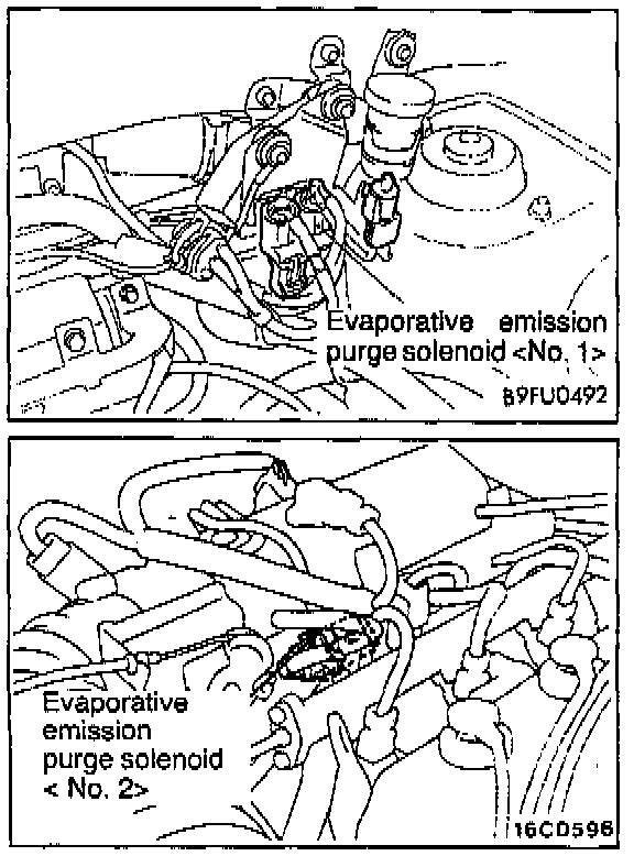 7. Disconnect the evaporative emission purge solenoid valve No. 1 connector.