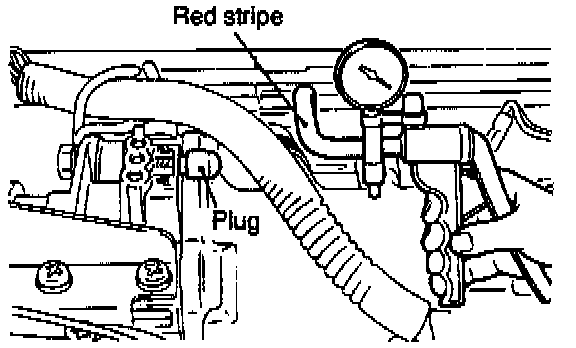1. Disconnect the vacuum hose (red stripes) from the throttle body and connect it to a hand vacuum pump.