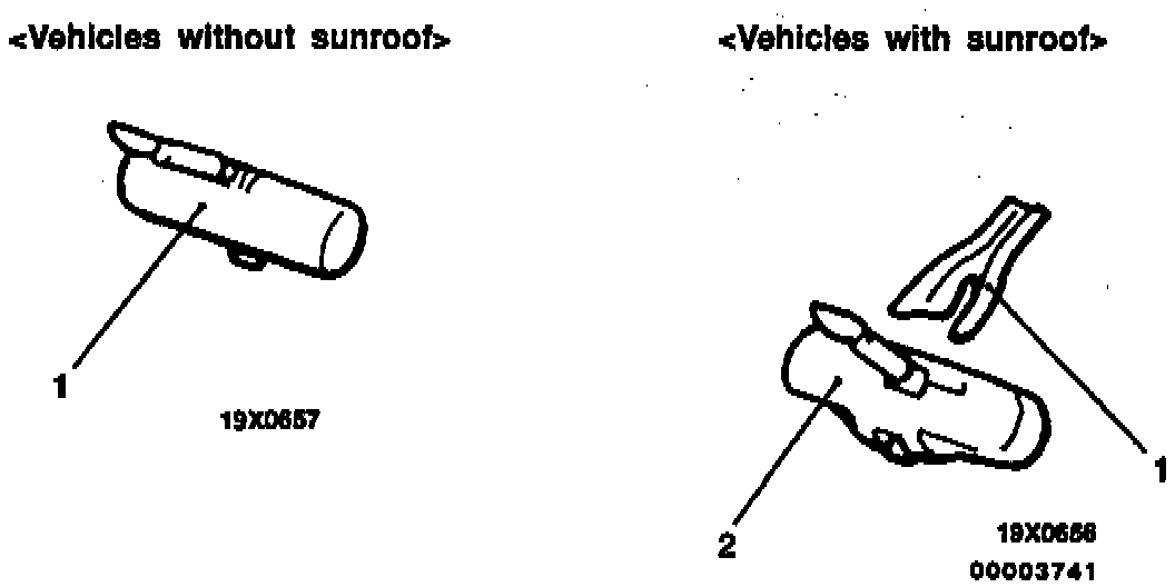 Insert a narrow flat-tip screwdriver into the slit in the inside rear view mirror bracket, keep the spring pushed in and remove the inside rear view mirror in the direction of the arrow in the illustration.