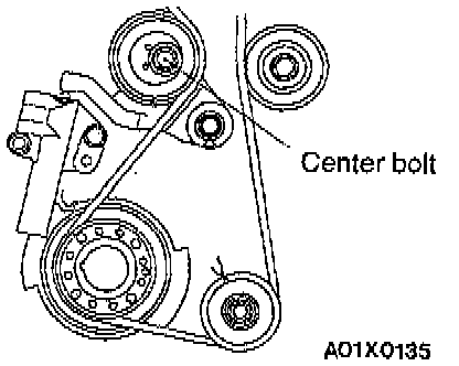 6. Loosen the tension pulley center bolt.
