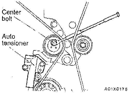 NOTE: When replacing the auto tensioner with a new part, the pin will be in the auto tensioner.