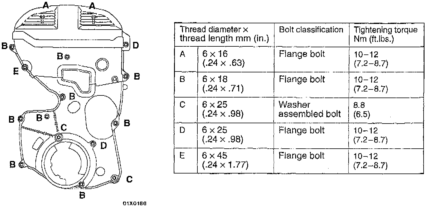 19. Install the bolts, being careful not to mistake the bolt sizes.