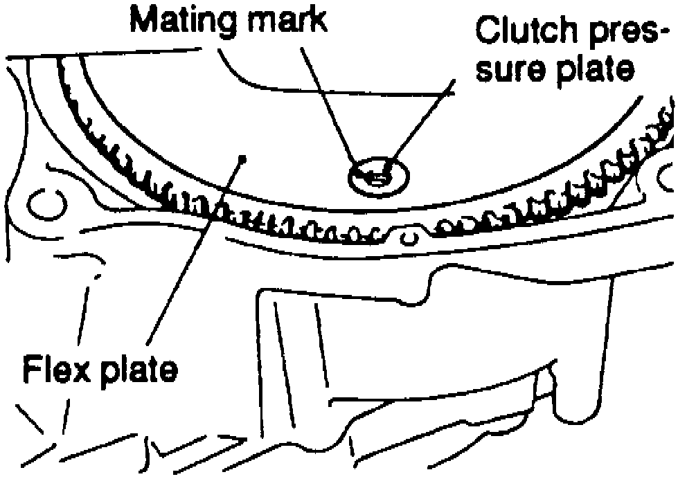 b. Chalk mating marks on the flex plate and clutch pressure plate for easier installation.