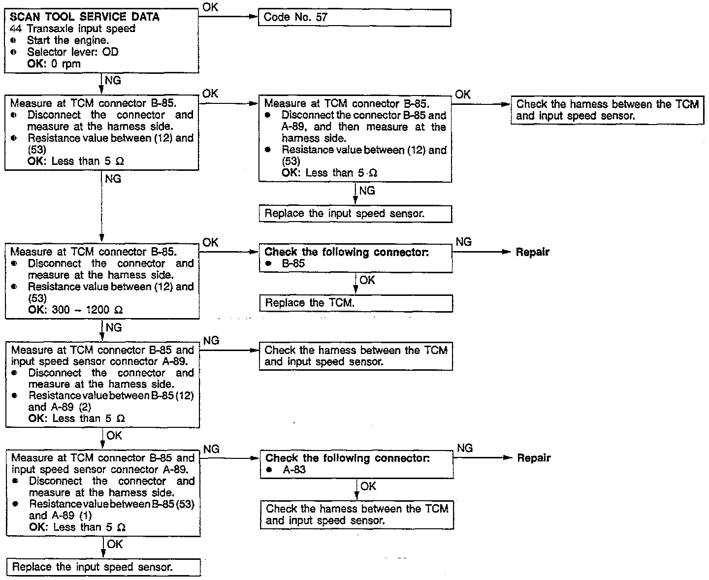 - Harness or connector between input speed sensor and TCM open or short-circuited