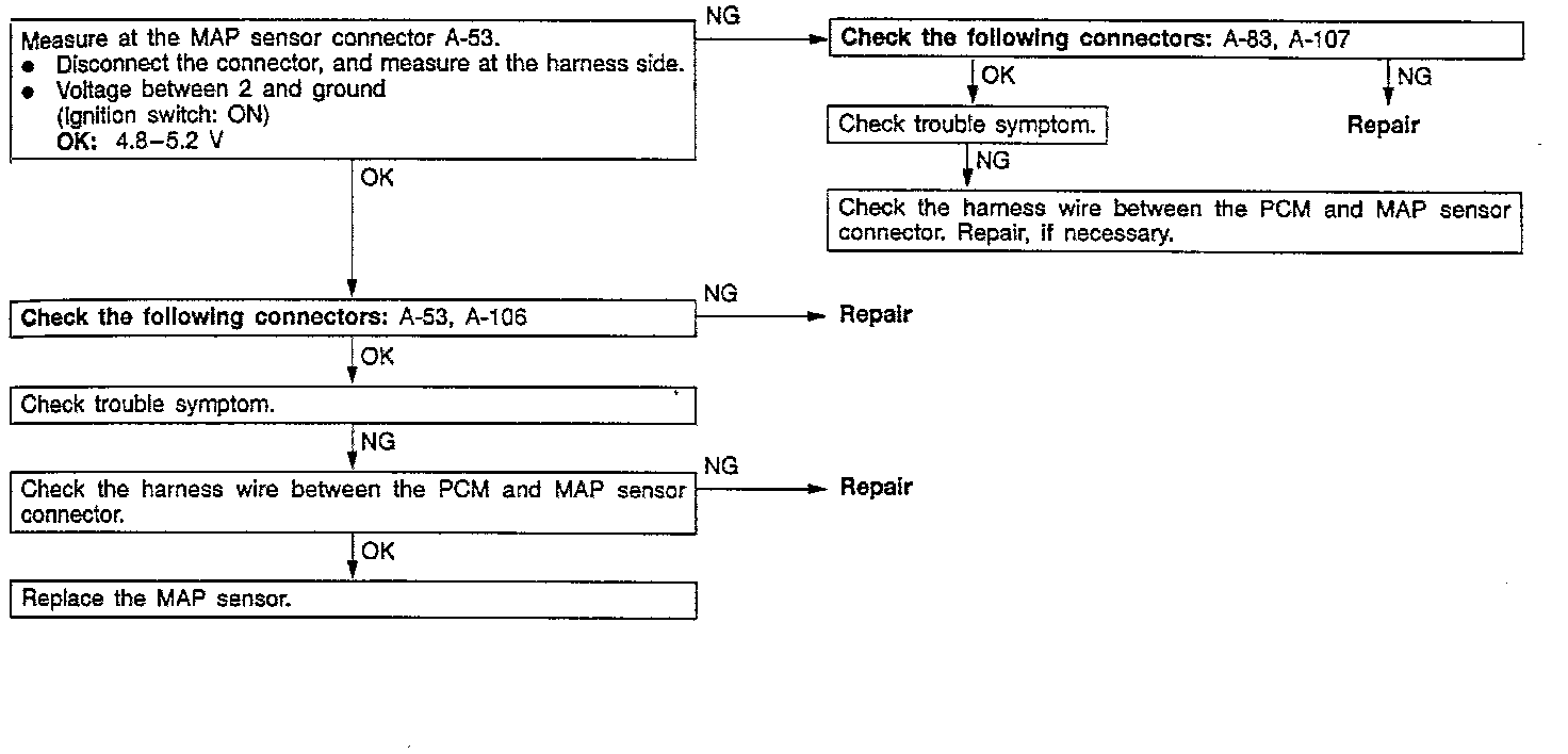 - The voltage of 5 volts is supplied to the MAP sensor. If this voltage is extremely low the MAP sensor output deviates from standard value.