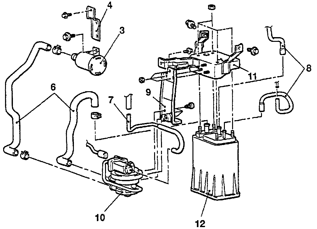 The Evaporative Emission Canister is located in the right front wheelwell, behind the splash shield.