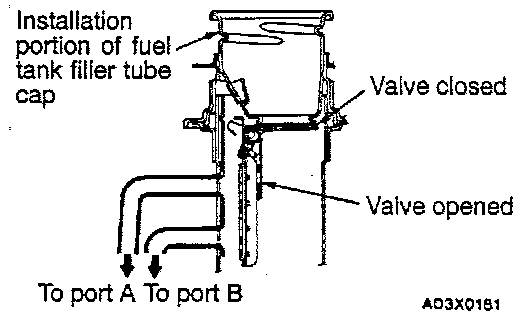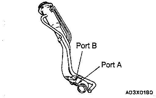 1. Connect a clean rubber hose to port A of the fuel tank filler tube assembly.
