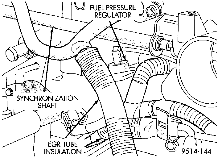 The fuel system uses a vacuum balanced, non-adjustable fuel pressure regulator. The powertrain control module (PCM) does not operate the regulator. The regulator attaches to the fuel return tube at the rear of the engine below the intake manifold plenum (Fig. 6).