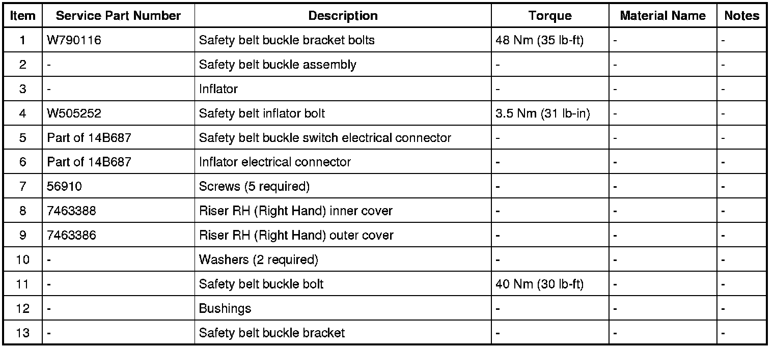 10. Check the active restraint system for correct operation. REFER to Functional Test - Safety Belt Buckle and Tongue Functional Test - Safety Belt Buckle and Tongue.