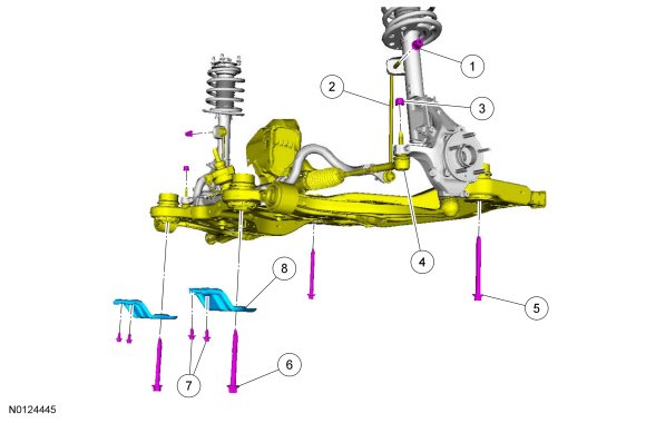 - Tighten the subframe rearward and forward bolts to 200 Nm (148 lb-ft).