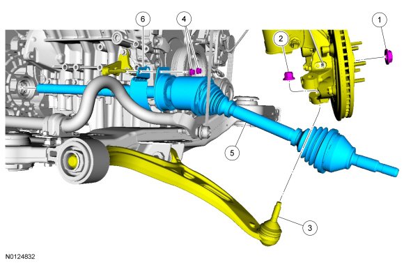 NOTICE: Use care when releasing the lower arm and knuckle into the resting position or damage to the ball joint seal or CV (Constant Velocity) boot may occur.