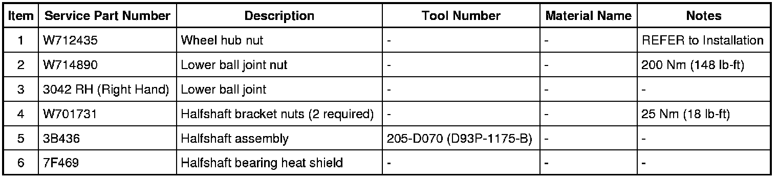 5. NOTICE: Do not tighten the front wheel hub nut with the vehicle on the ground. The nut must be tightened to specification before the vehicle is lowered onto the wheels. Wheel bearing damage will occur if the wheel bearing is loaded with the weight of the vehicle applied.