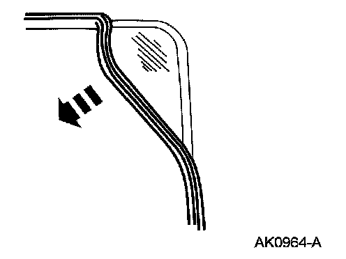 1. Place a new weatherstrip into position on the glass assembly, with the splice (seam) on the passenger side.