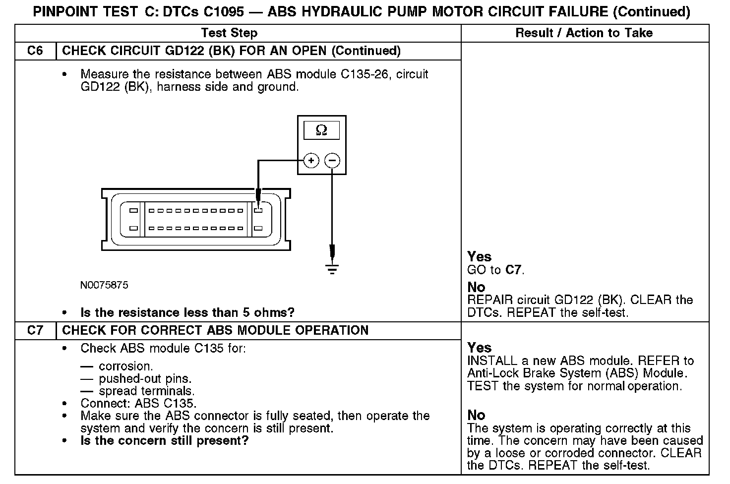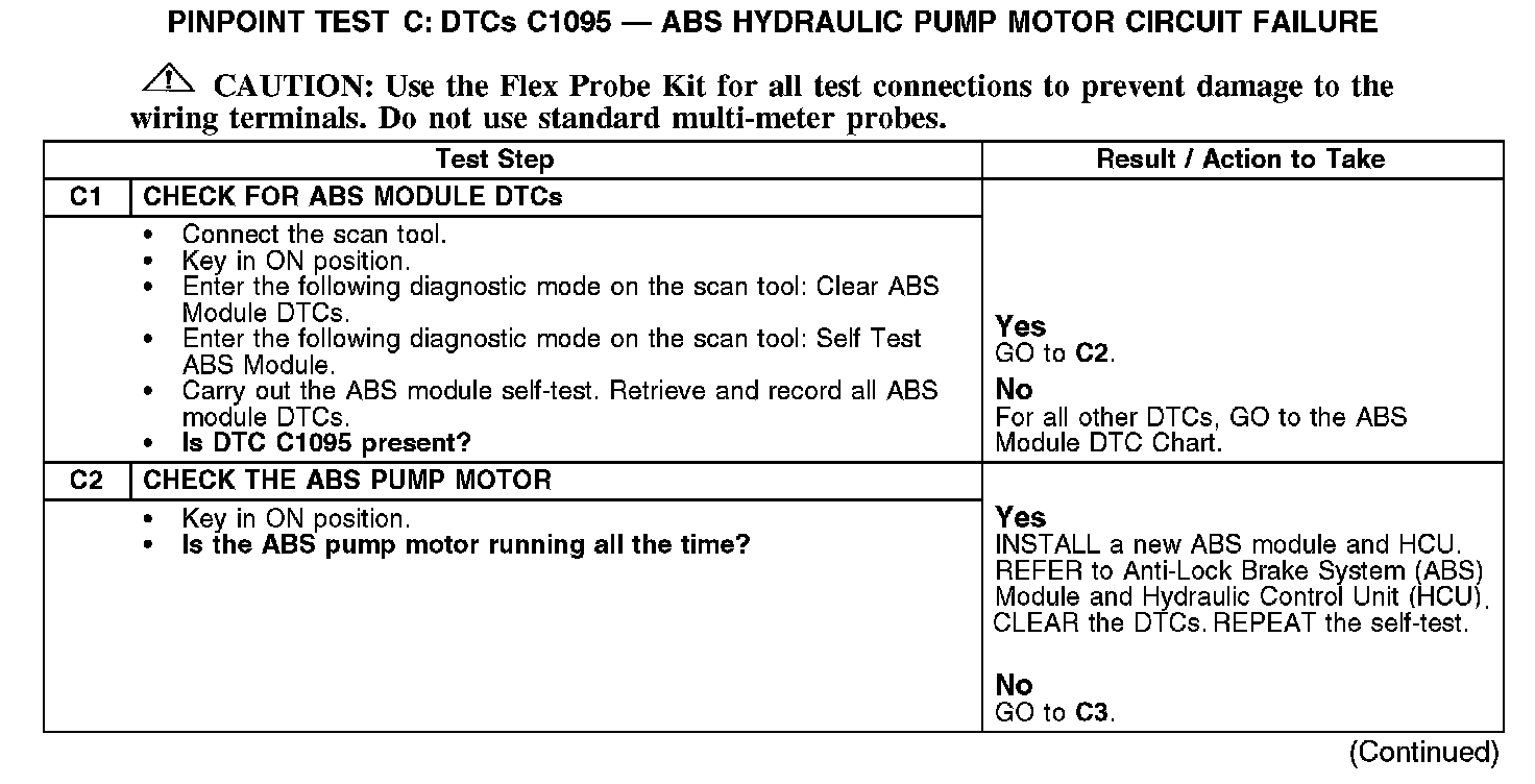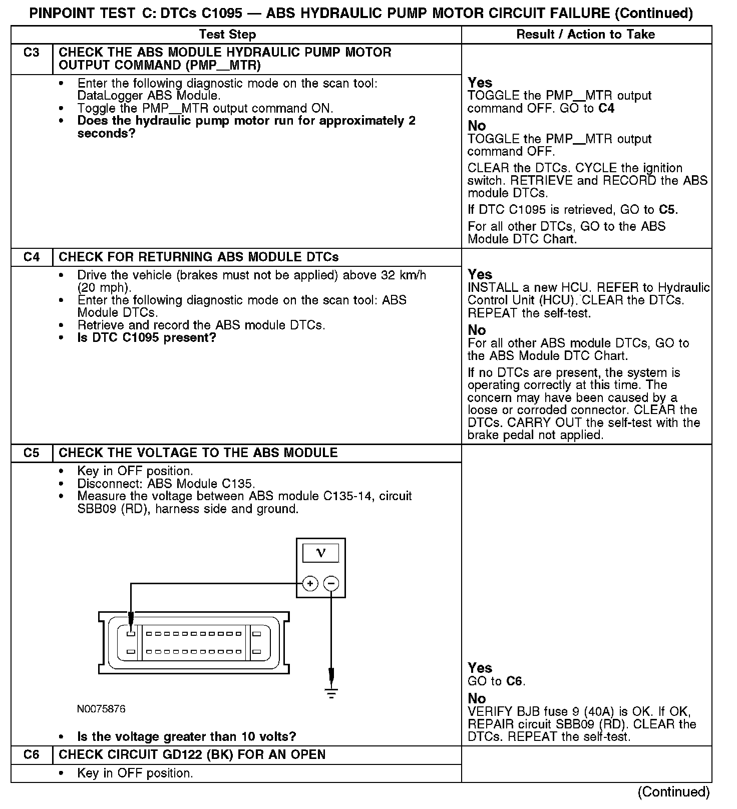 Pinpoint Test C: DTC C1095 - ABSHydraulic Pump Motor Circuit Failure