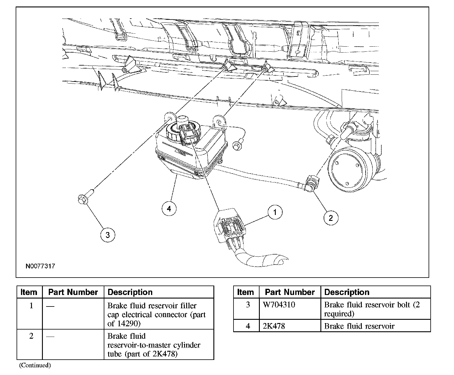 1. Disconnect the electrical connector from the brake fluid reservoir filler cap.