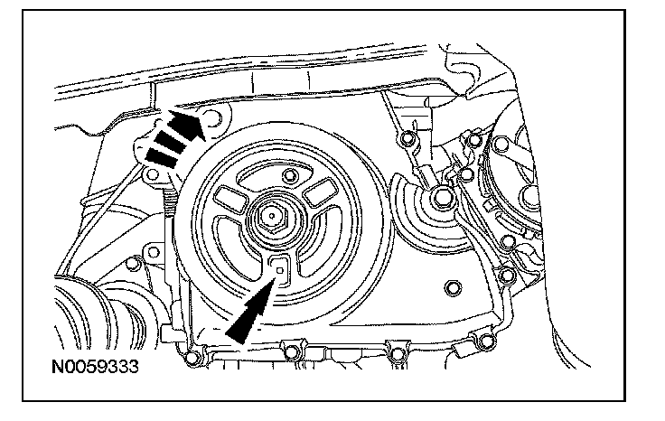 NOTE: The camshaft timing slots are offset. If the special tool cannot be installed, rotate the crankshaft one complete revolution clockwise to correctly position the camshafts.