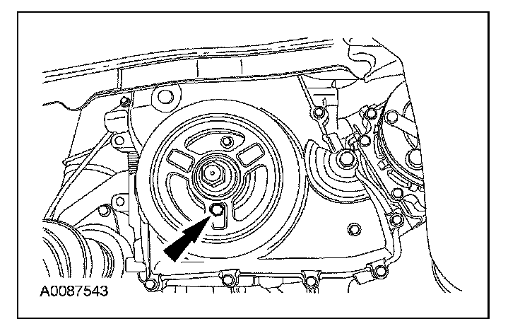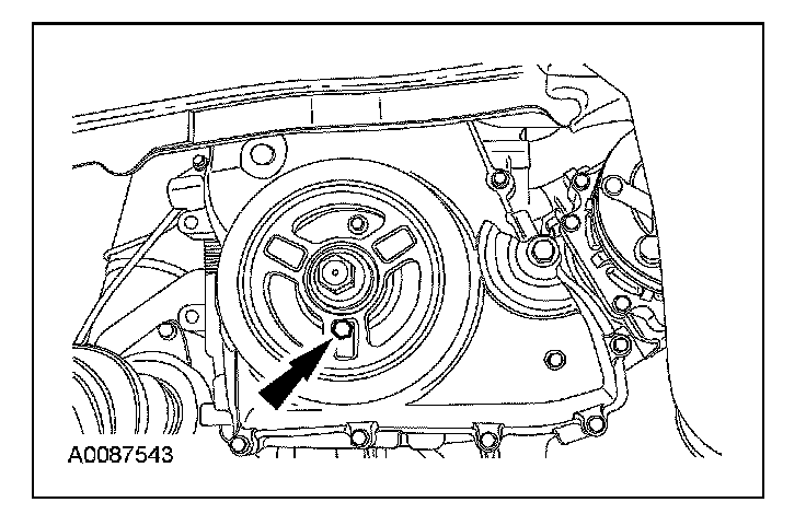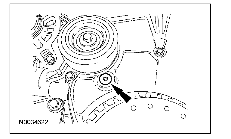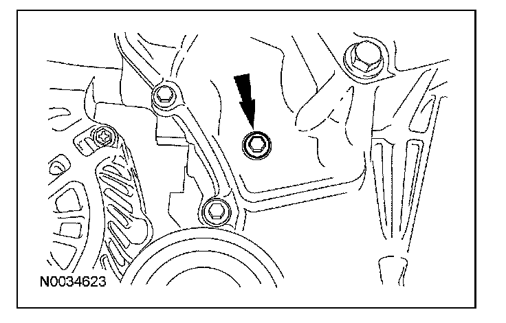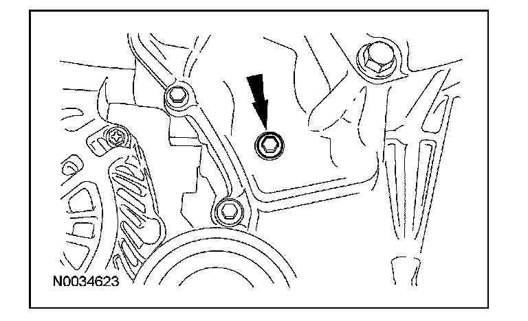 12. Remove the front cover upper timing hole plug from the engine front cover.