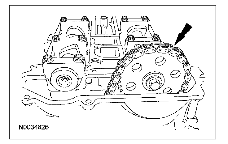 5. NOTE: The timing chain must be correctly engaged on the teeth of the crankshaft timing sprocket and the intake camshaft drive gear in order to install the exhaust camshaft drive gear onto the exhaust camshaft.