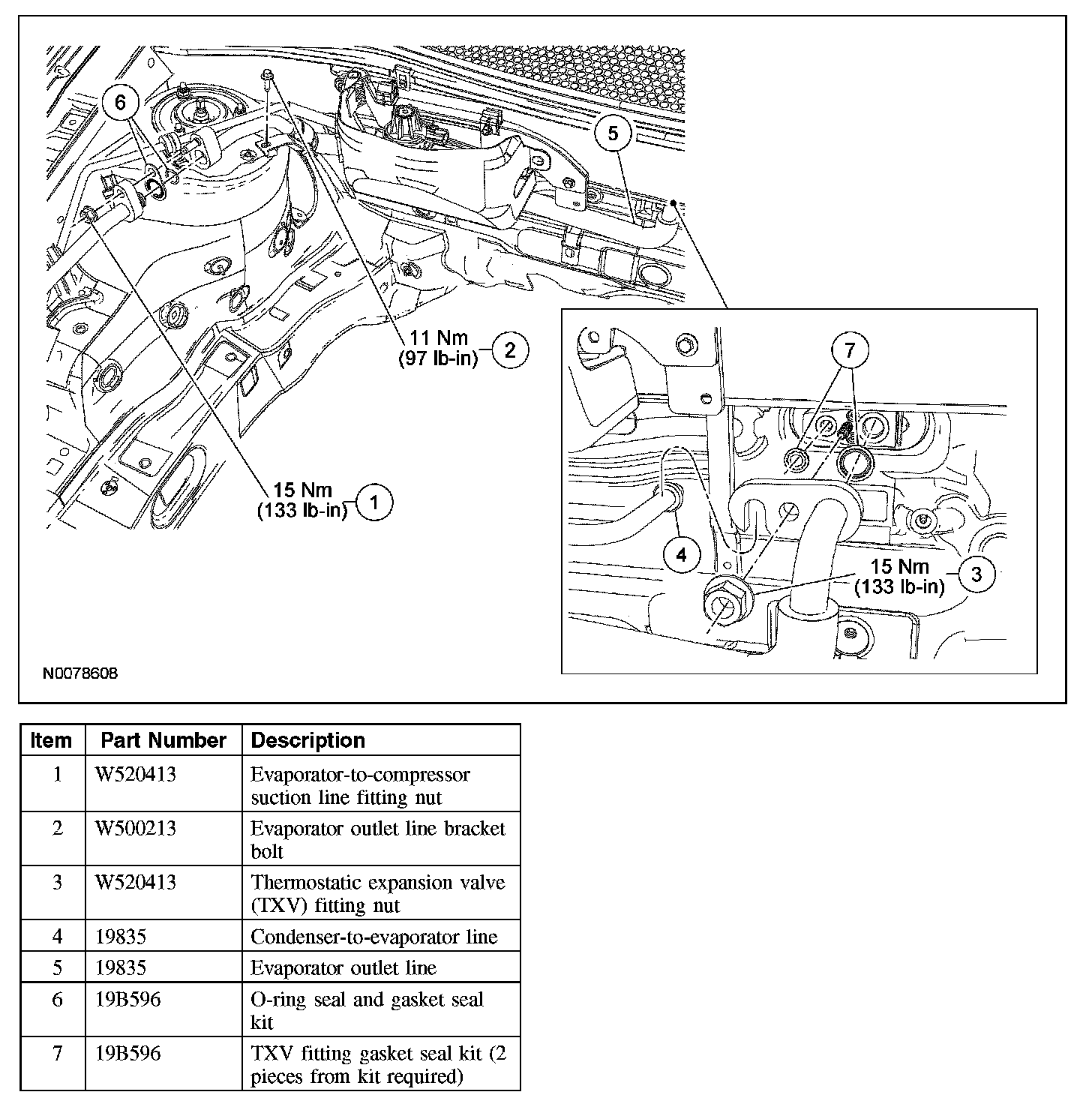 4. NOTE: The condenser-to-evaporator line must also be disconnected at the thermostatic expansion valve (TXV) to remove and discard the gasket seal.