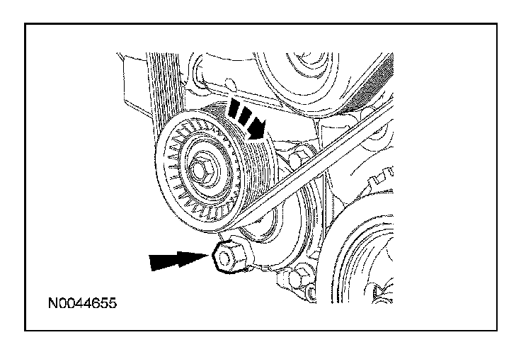 3. Using the hex feature, rotate the accessory drive belt tensioner clockwise and remove the accessory drive belt.