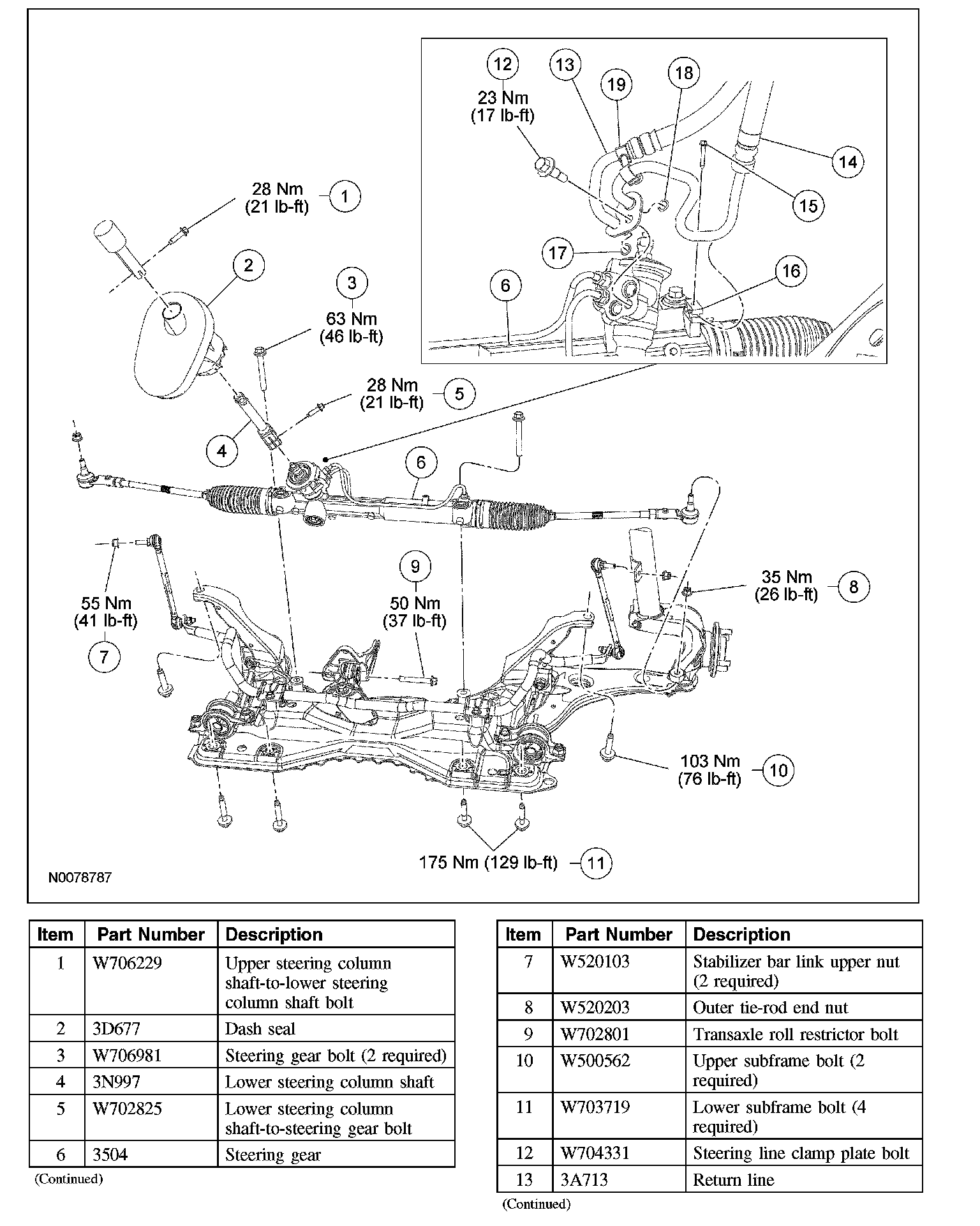 CAUTION: Steering fasteners are critical parts because they affect performance of vital components and systems and their failure may result in major service expense. New parts must be installed with the same part numbers or equivalent part, if replacement is necessary. Do not use a replacement part of lesser quality or substitute design. Torque values must be used as specified during reassembly to make sure correct retention of these parts.