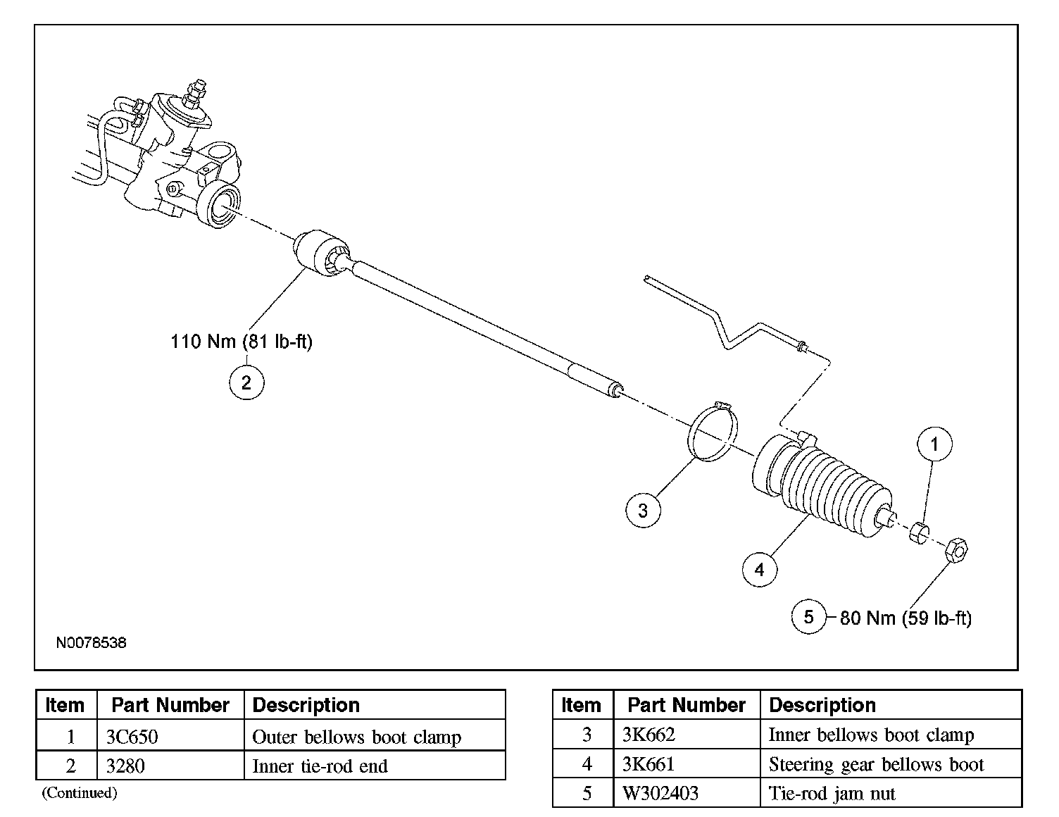 1. CAUTION: The steering gear bellows boots and clamps are designed to produce an airtight seal and protect the internal components of the steering gear. If the seal is not airtight, the vacuum generated during turning will draw water and contamination into the gear, causing damage. Zip ties do not provide an airtight seal and must not be used.