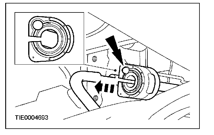 CAUTION: To prevent bushing damage and incorrect stabilizer bar operation, the stabilizer bar bushings must be located correctly on the stabilizer bar. The protrusion on both bushings must be facing the LH side of the vehicle for correct installation.