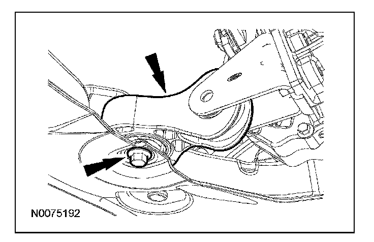 1. CAUTION: The roll restrictor bolts are different lengths. If the long bolt is used to hold the roll restrictor to the subframe, damage to the steering rack may occur.