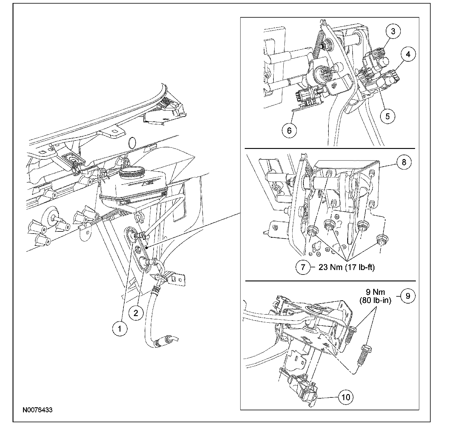 4. Install the 4 clutch pedal assembly nuts.