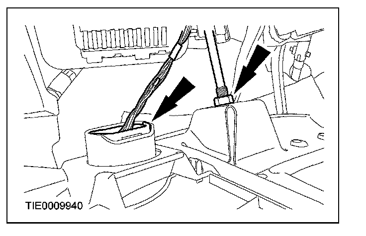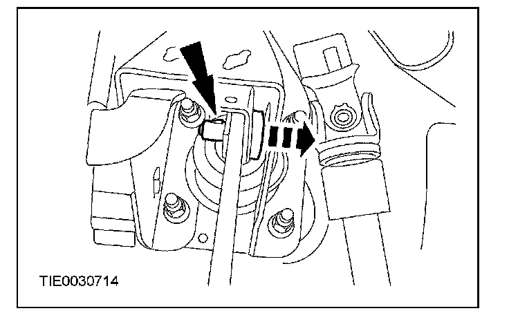 ^ Disconnect the hood release cable.