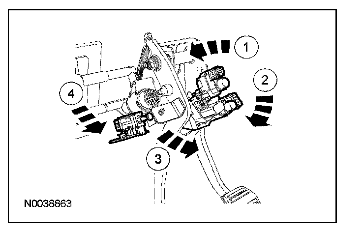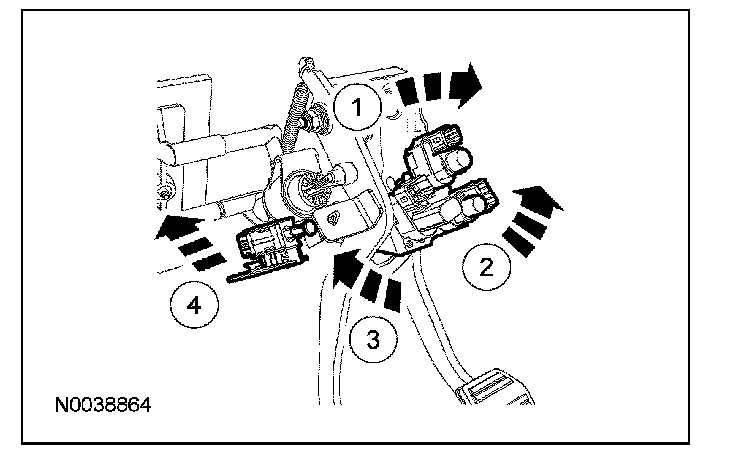 10. Disconnect the starter safety switch, clutch position switch, speed control deactivation switch and brake lamp switch electrical connectors from the pedal assembly.