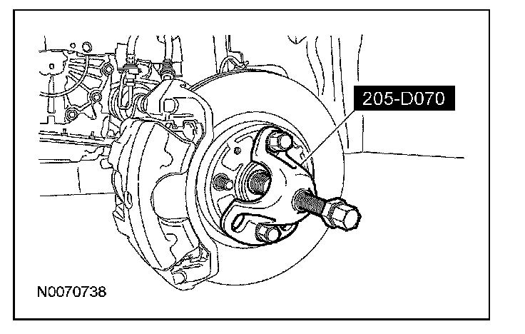 NOTE: Install and tighten the new wheel hub retaining nut to specification in a continuous rotation. Always install a new wheel hub retaining nut after loosening or when not tightened to specifications in a continuous rotation.